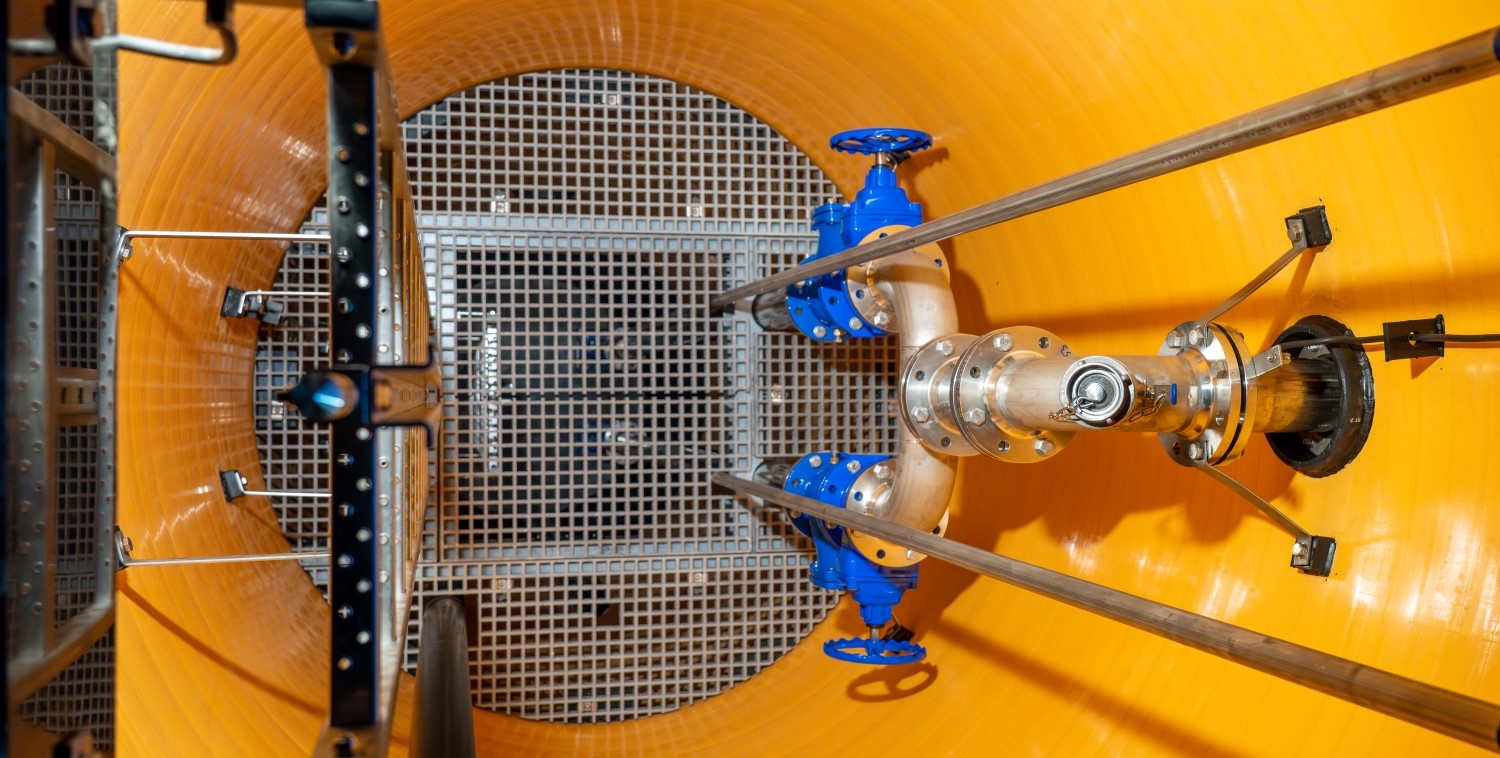 Ab einer Schachttiefe von 5,00 m ist aus arbeitssicherheitstechnischen Gründen eine Absturzsicherung am Leitersystem erforderlich. Unsere bevorzugte Lösung: eine werksseitig eingebaute Zwischendecke. Sie reduziert die Absturzhöhe unter 5,00 m und dient gleichzeitig als stabile Arbeitsplattform mit optimalem Zugang zu allen relevanten Armaturen.